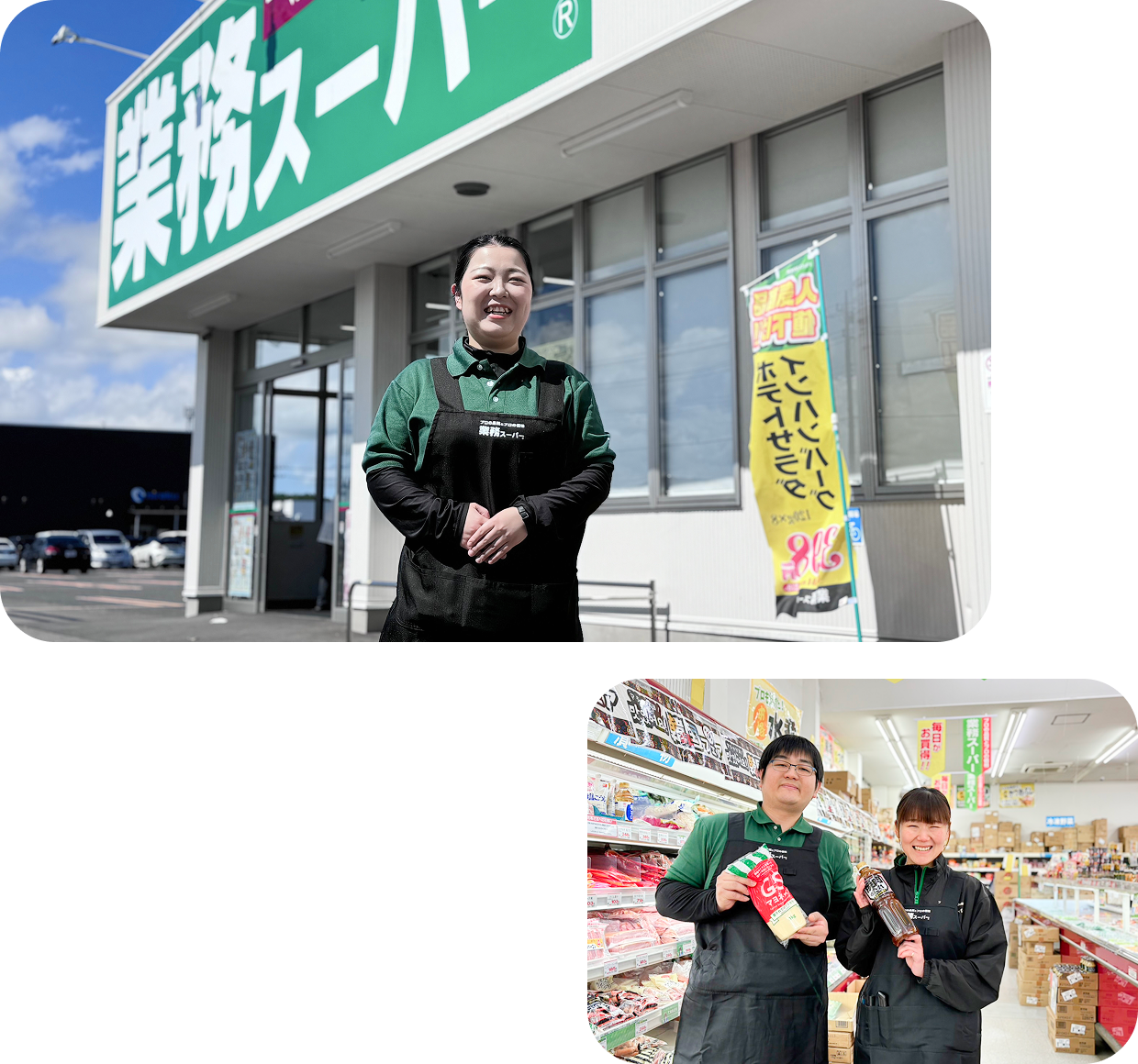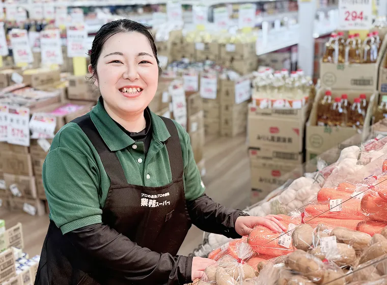 業務店のお客様には、商品知識、人生経験が豊富な方が多く、日々意見交換をさせていただいています。業務スーパーの商品を使用したアレンジメニューの相談など、お客様との関係が近く、毎日新たな発見があることが魅力です。