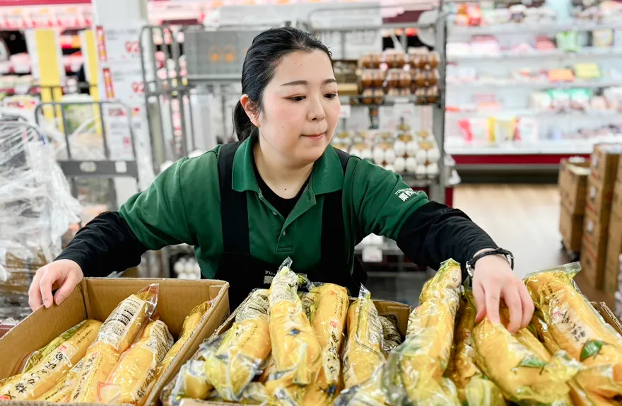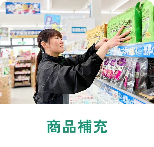 入社をしたら、基本のレジ業務や品出しから始めます。段階に応じて業務を習得しキャリアアップを目指していきます。