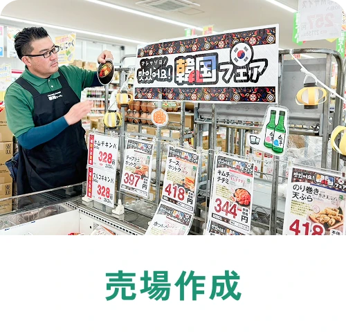 商品の展開、売場の作成等、店舗ごとにアイデアを出し合い、自由に作成することができます。年齢、社歴よりも個々のやる気、能力を評価していただけます。