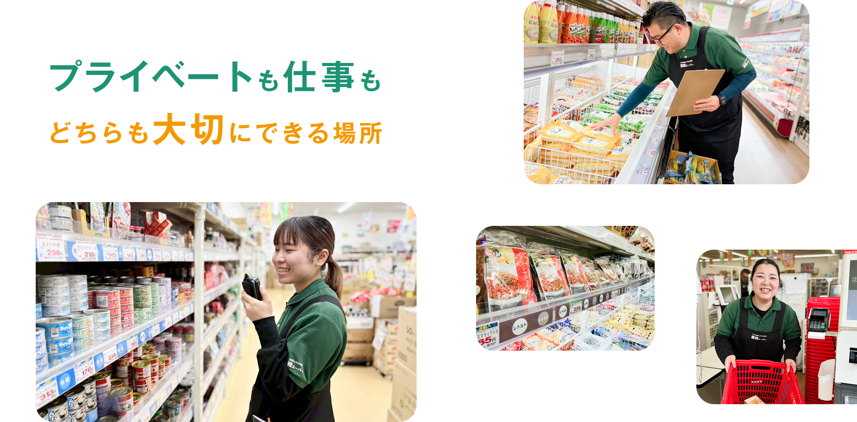 他のスーパーと違って活気がある事に驚きました。心地良い挨拶と、テキパキとした動作、何よりスタッフの方々が楽しそうに働いている姿を見て、同じフィールドで働きたいと決意しました。
